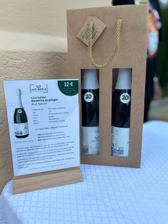 Cava de qualitat excepcional amb un propòsit social. Amb cada ampolla de Cava Solidari que adquireixes, estàs contribuint directament a millorar la vida de les persones amb discapacitat intel·lectual ateses per la Fundació Ave Maria. El 100% dels beneficis es destinen a projectes que promouen la seva inclusió social, oferint-los suport, assistència i l'oportunitat de desenvolupar les seves habilitats.